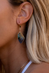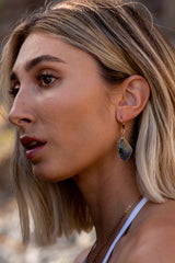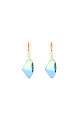 Inspired by the brilliant blues of the Pacific Ocean, the Ombre Stone Earrings are made from 24k gold and poised with a blue-green, ombre gem that swishes beautifully as you move. Showcase their gentle movement with tucked-back hair.