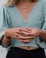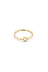 A sleek, gold-filled band adorned with a cubic zirconia gem. This timeless piece, crafted with 24k gold overlay, can be singularly worn or stacked with our Sophia Ring.
