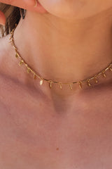 This delicate necklace is a wardrobe must-have. Dainty and easy to layer, the Sol Necklace is carefully handmade from 24k gold. It's strung with polished, oval charms. Wear this piece solo or with our Brooke Earrings.