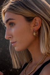 These vintage hoops put a twist on the classic gold hoop. Featuring a 24k gold overlay and finished with Renaissance-inspired scalloped borders. The design's elegant simplicity makes them suitable for day and evening alike.